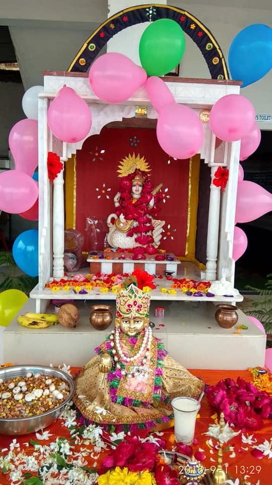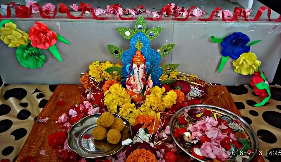 The priest Pt.Narayandas Bairagi performed Pooja while reciting the mantras along with the students. He narrated the origin of Lord Ganesha the principal of LCS asked the students to follow the path of honesty and humanity.